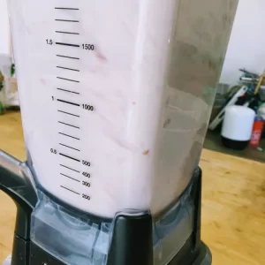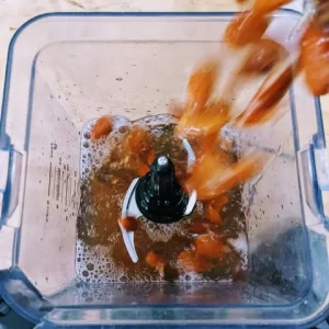 After dumping the soaking water and rinse water, combine your soaked almonds with all the ingredients in a large container.